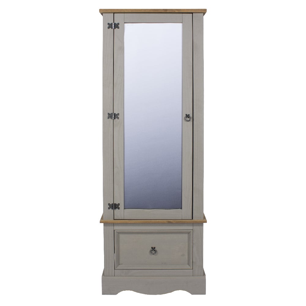 CHOICEWARDROBE Consett 60cm Grey & Oak Wooden 1 Door Mirrored Wardrobe with Drawer | Compact Rustic Bedroom Storage Unit