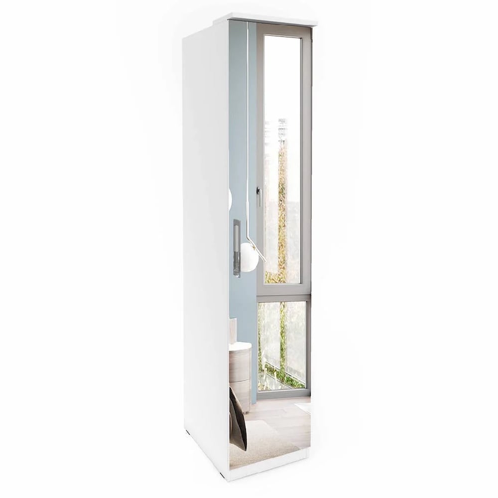CHOICEWARDROBE Olathe Slim 45cm Mirrored Wardrobe – 1 Door White Finish | Compact Bedroom Storage with Shelves for Modern Homes