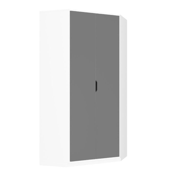 Corner Wardrobe - SARNIA 2 Door Wardrobe White with Grey Front 93cm