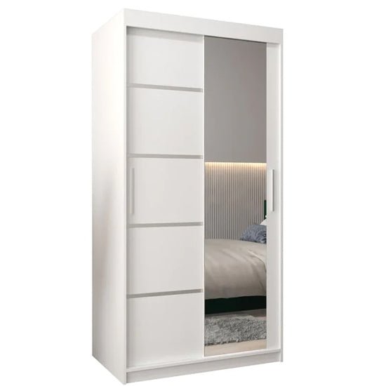 Vevey 100cm Sliding Mirrored Wardrobe – Sleek White Modern Storage