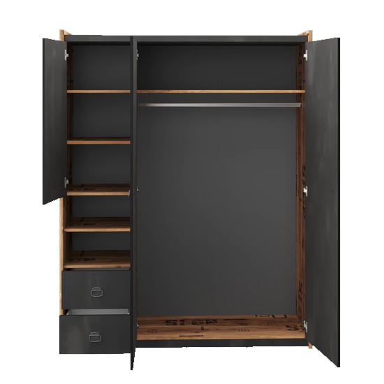 - Three Doors & Two Drawers – Generous internal layout with both hanging and folded-item storage.