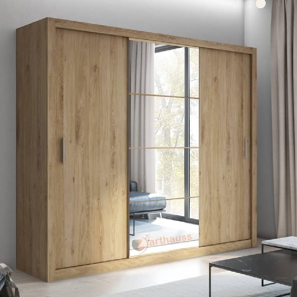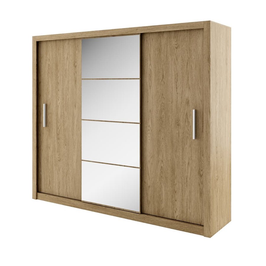 Featuring three smooth sliding doors, including a central mirrored panel, the Inverto makes any space feel brighter and more spacious. Inside, you’ll discover dual hanging rails for long garments and jackets, plus six fixed shelves ideal for folded clothes, bedding, or accessories. Built from high-quality 16 mm laminated board, it delivers long-lasting strength and a premium feel that complements both modern and rustic interiors.