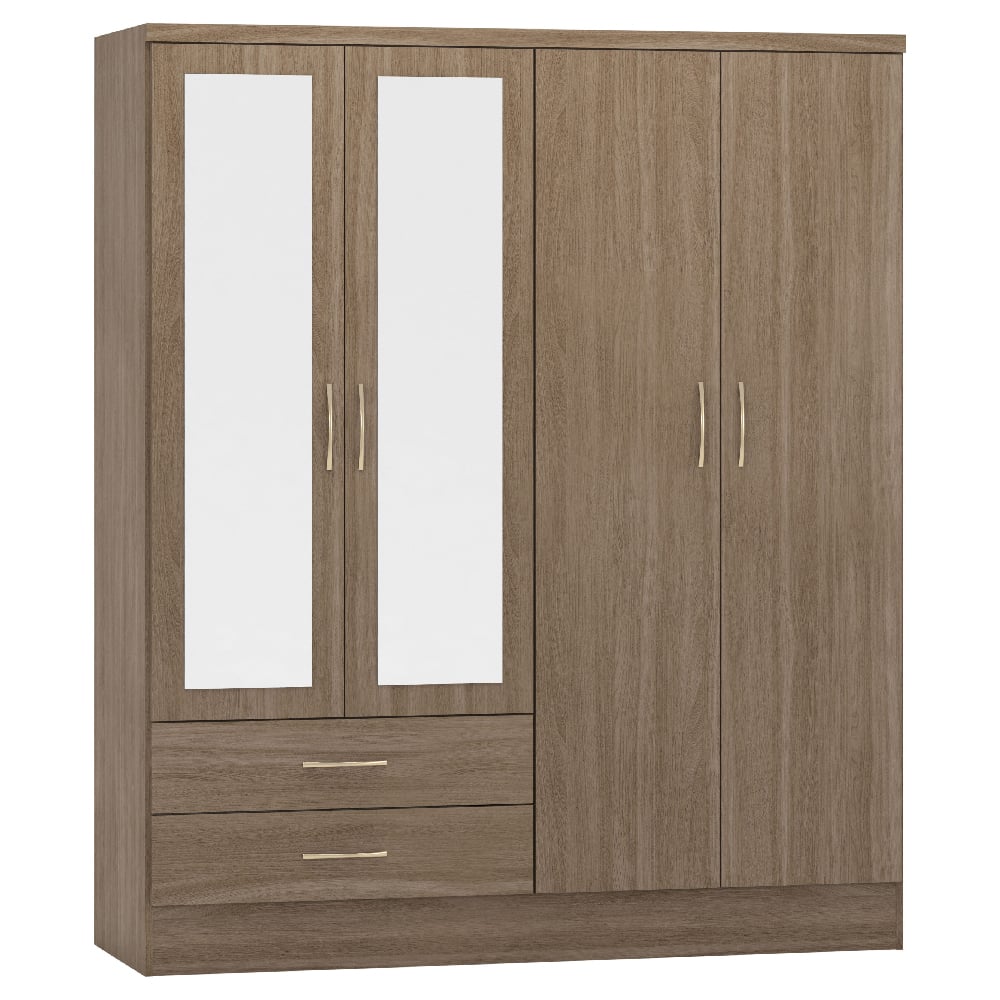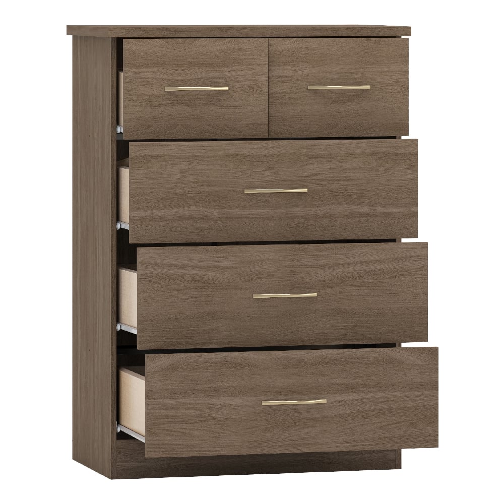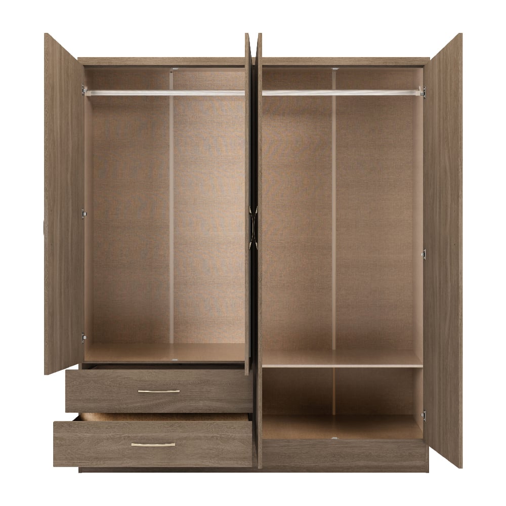 The Rustic Oak finish adds natural character and depth, creating a calm and inviting bedroom atmosphere. Each piece is expertly crafted from high-quality wood for stability and long-lasting use. With thoughtful detailing, silver-toned handles, and a spacious mirrored wardrobe, the MACK collection enhances both the look and functionality of your home — a complete storage solution designed for modern living.