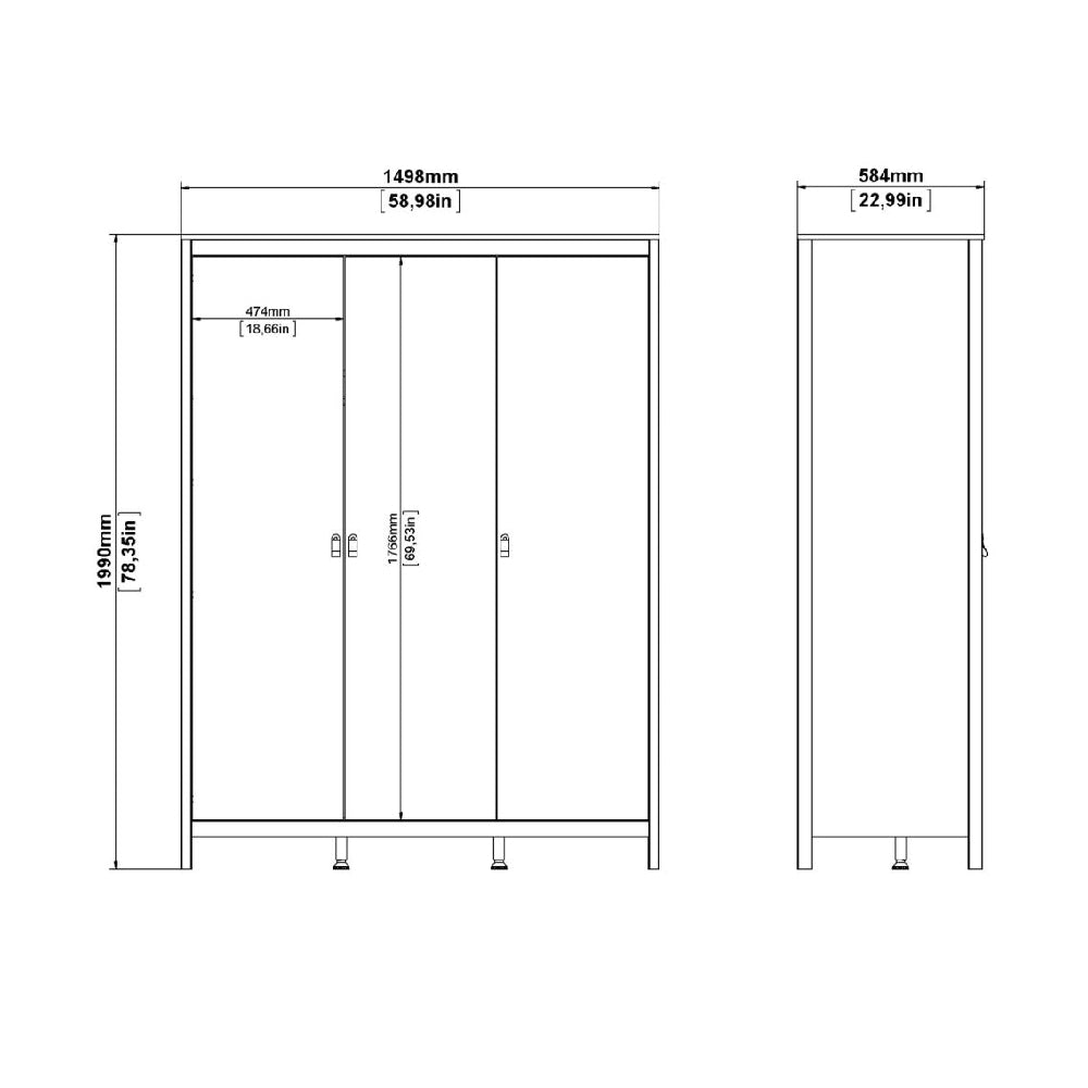 Designed for efficient organisation, the three-door layout opens to reveal a generous internal arrangement of hanging space and shelving. This allows you to store clothing, accessories, and essentials in a structured, clutter-free way while maintaining a calm and balanced bedroom environment.