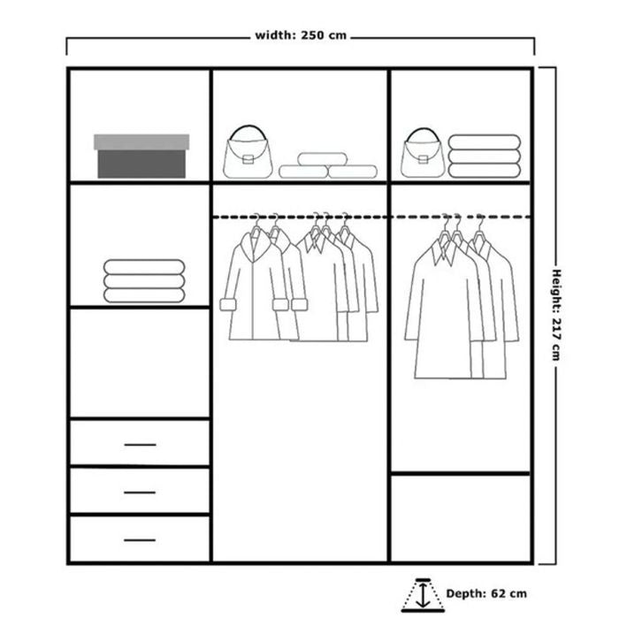 With three smooth sliding doors and a 250cm width, the Zeus is suited to master bedrooms, shared spaces, or wardrobes with high storage demands.