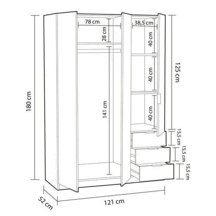 Designed for compact bedrooms and efficient storage, this oak effect 3 door wardrobe delivers a refined balance of space-saving practicality and modern styling. Its slim footprint makes it ideal for smaller rooms, while the internal layout provides dedicated hanging space and integrated drawers for organised everyday use.