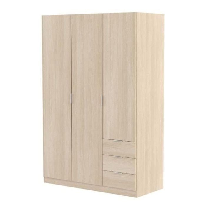 Wardrobe - HARVEY 3 Door Wardrobe Oak 121cm