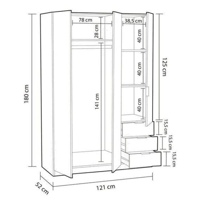 Please ensure your room has at least 20 cm of excess space around the full dimensions of the wardrobe, and 3–5 cm of space from either side once positioned. Depending on your room layout, more space may be required to manoeuvre the wardrobe safely. If you are unsure, please contact us before ordering.