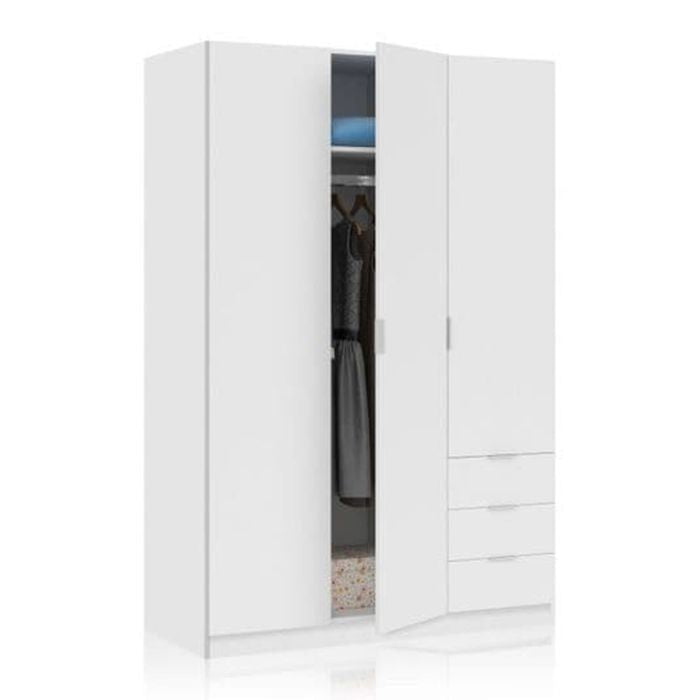 Wardrobe - HARVEY 3 Door Wardrobe White 121cm
