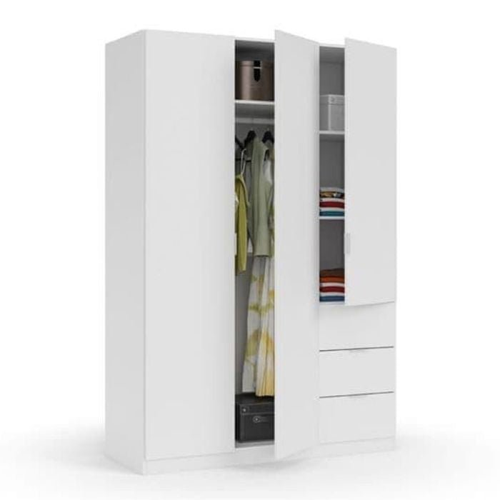 Wardrobe - HARVEY 3 Door Wardrobe White 135cm