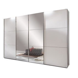 Sliding Wardrobe - LANTAU 4 Door Mirrored Wardrobe White 272cm