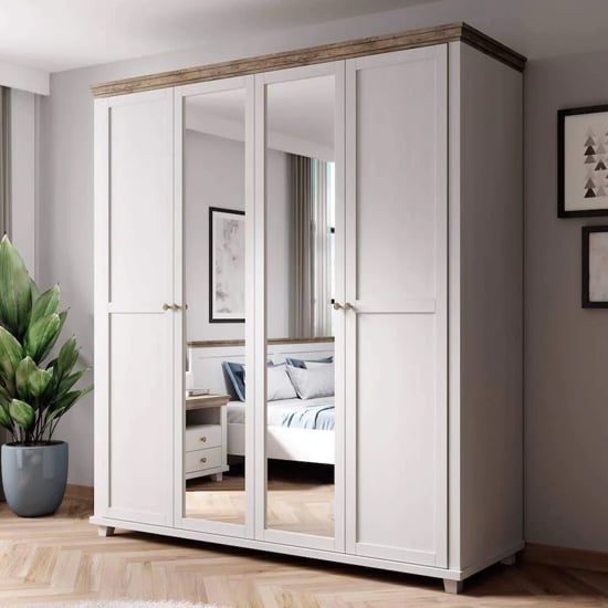 The CHOICEWARDROBE Eilat 4 Door Mirrored Panelled Wardrobe in Abisko Ash is a composed, architectural storage solution designed for refined bedrooms that value balance, clarity, and longevity. Its framed door construction and natural-toned finish place it firmly within a classic-modern aesthetic, avoiding trend volatility while delivering everyday functionality.