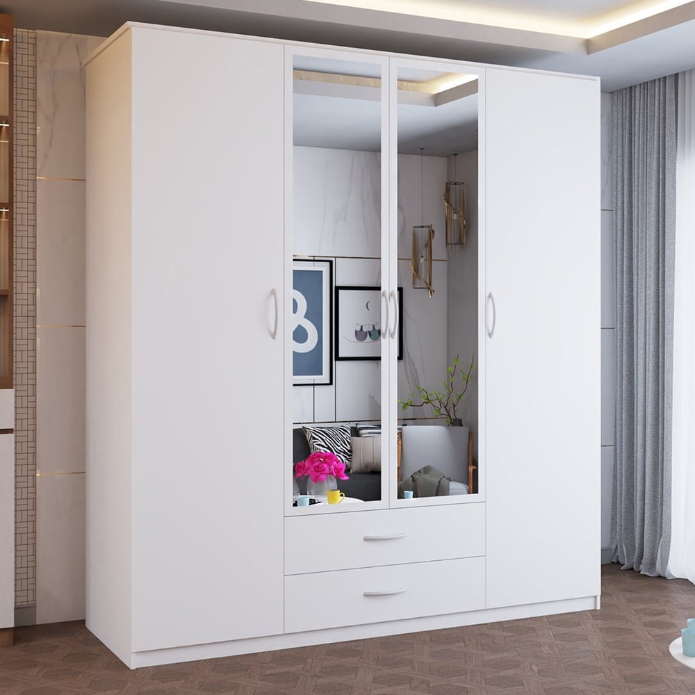 CHOICEWARDROBE London Finish Wardrobe – 4 Door, 2-Drawer Hinged Mirrored Wardrobe