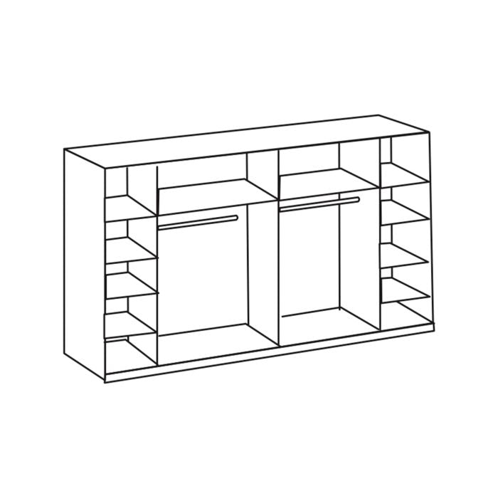 This LANTAU Sliding Wardrobe has two sections, each of which has a hanging rail and shelf which is perfect for additional storage space. The wardrobe is supported by a strong and durable carcass that will complete the look of your bedrooms. The large mirror on the front is also perfect for dressing in the morning. The wardrobe comes with two hanging rails, two large shelves and 8 small shelves.