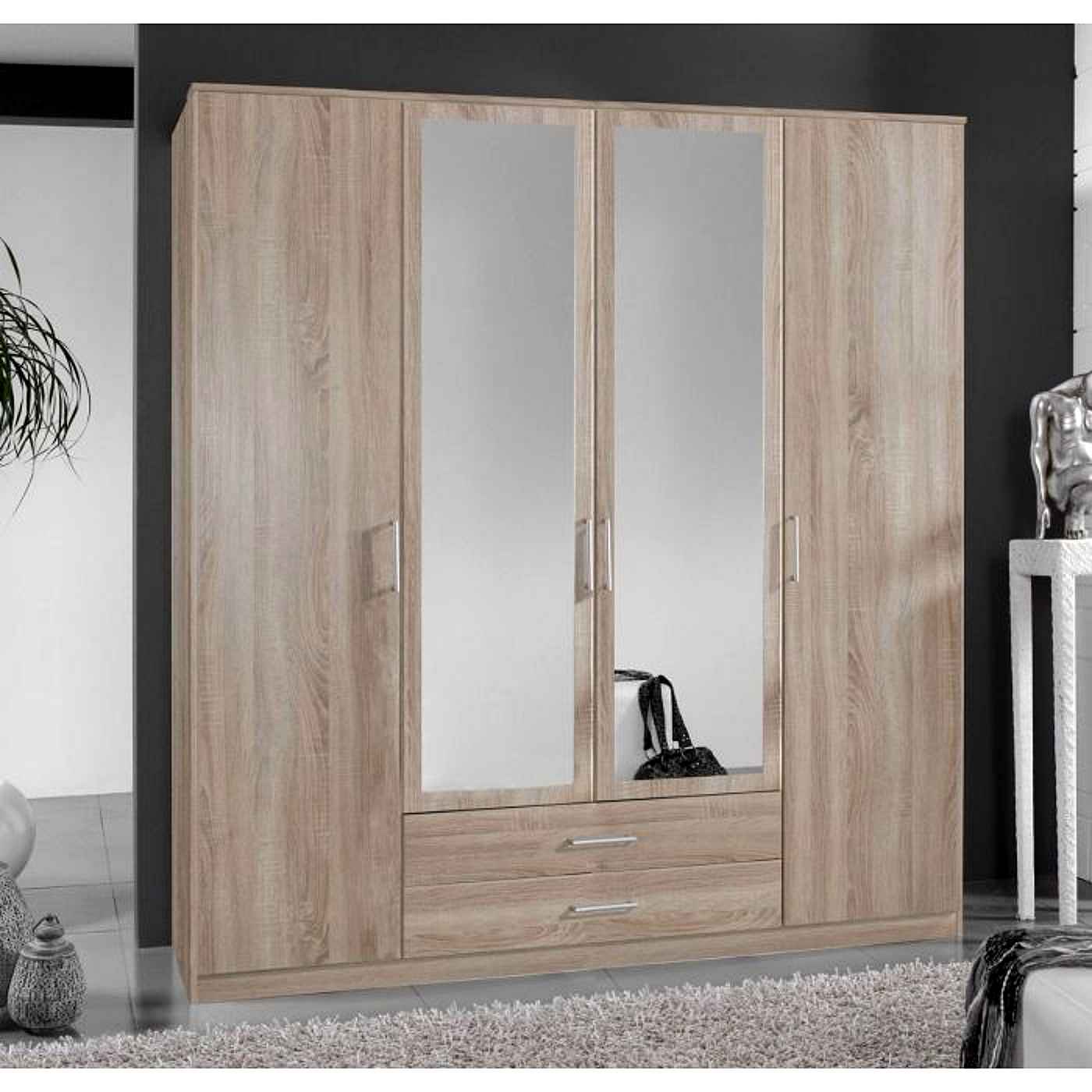 CHOICEWARDROBE Okhra Hinged Wardrobe 4 Door 180cm Wide Oak Finish Mirrored Central Doors