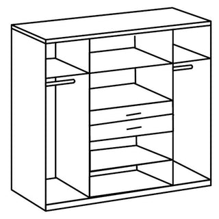 Internal configurations vary by design and may include multiple hanging rails, shelving sections, and drawers. Full details are listed on individual product pages.