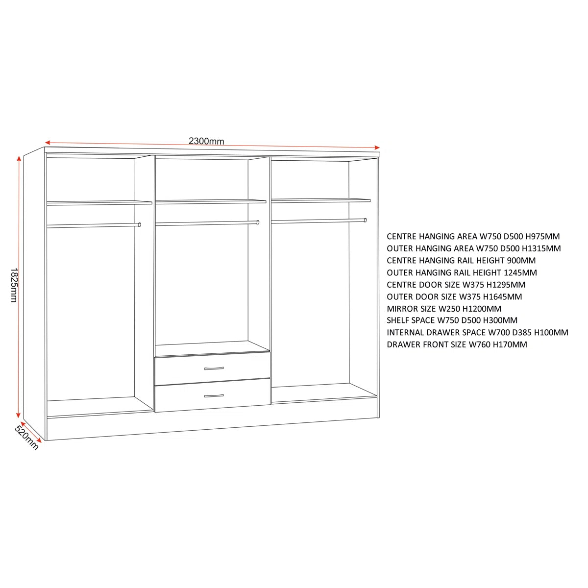 | Centre Hanging Area | W 75 × D 50 × H 97.5 cm |