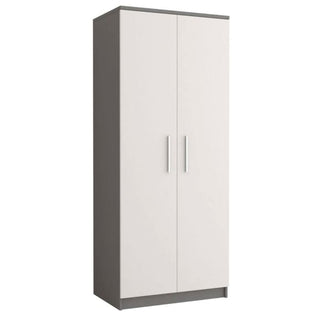 CHOICEWARDROBE Orlan 2 Door Wardrobe – 80cm Wide, Grey Frame with White Doors | Compact Hinged Design for Contemporary Spaces
