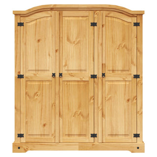 CHOICEWARDROBE Norland Pine 3 Door Wardrobe | Natural Wooden Finish with Black Metal Hinges – Traditional Country Style
