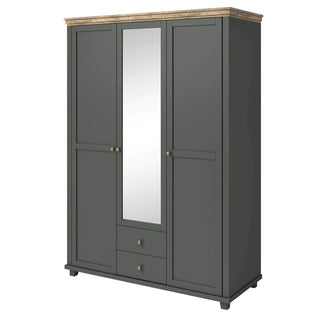 CHOICEWARDROBE Norrin Deep Green & Oak Mirrored Wardrobe | 3 Door Wardrobe with Drawers – Modern Country Design