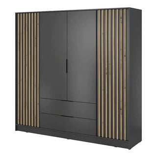 CHOICEWARDROBE Norco 206cm 4 Door Wardrobe – Matte Black with Oak Slatted Panels & Central Drawers