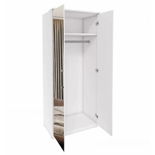 CHOICEWARDROBE Olathe 2 Door Mirrored Wardrobe – White Finish | Space-Saving Bedroom Storage 90cm