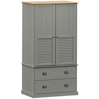 CHOICEWARDROBE Norwyn Grey Wooden Wardrobe with 2 Drawers | Oak Top & Louvre Doors