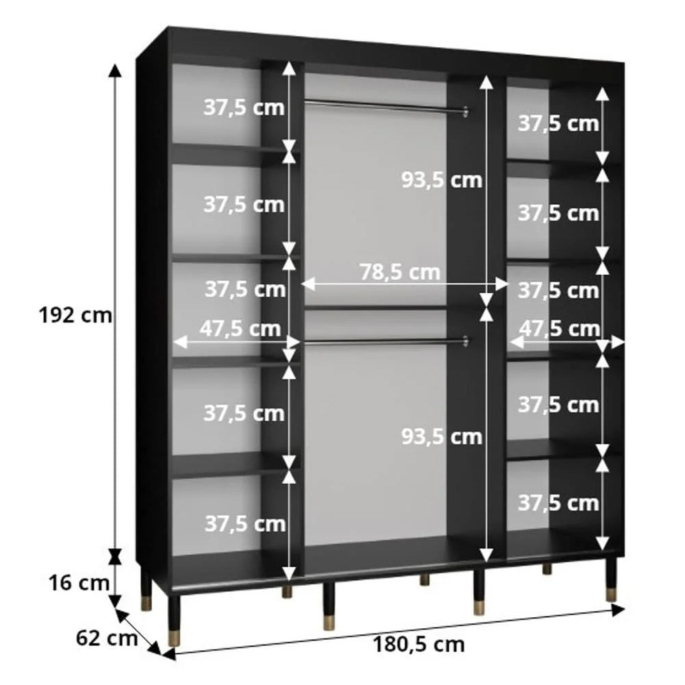 • 180cm wide sliding wardrobe optimised for structured, everyday storage