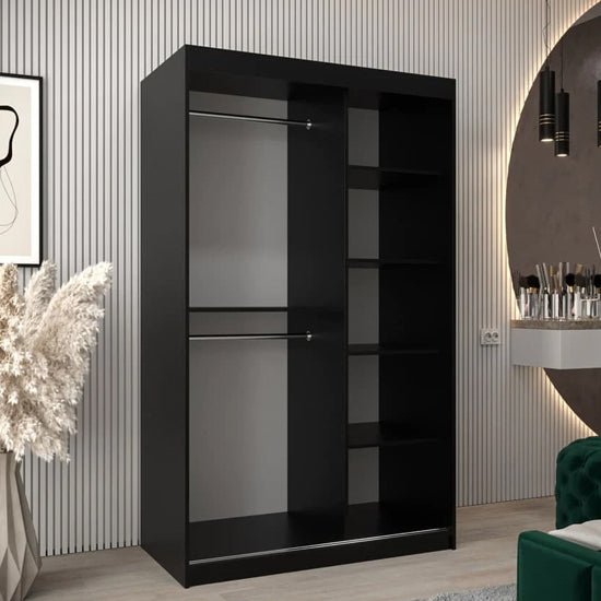 Beloit 120cm Sliding Mirrored Wardrobe – Matte Black Contemporary Storage