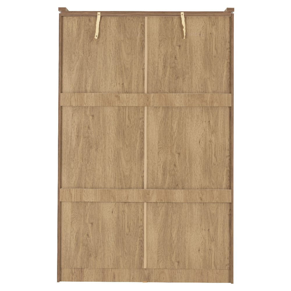 Upgrade your bedroom storage with the Crieff Wooden Wardrobe from Furniture in Fashion. Designed with a stylish oak and walnut finish, this modern wardrobe seamlessly combines elegance with functionality. Its two sliding doors provide easy access while saving space, making it an excellent choice for contemporary and compact interiors. Built with durability in mind, the Crieff Wardrobe offers ample storage for your clothing, accessories, and essentials. The spacious interior features a hanging rail and shelves, allowing for organized storage while maintaining a sleek, clutter-free look. Whether you have a minimalist, modern, or classic bedroom setup, this wardrobe adds warmth and sophistication to your space. Enhance your bedroom with the Crieff Wooden Wardrobe from Furniture in Fashion, where stylish design meets functional storage. FEATURES : Material : Wooden Finish : Oak, Walnut Elegant Design – Stylish oak and walnut finish enhances any bedroom décor Sliding Door Mechanism – Saves space and ensures smooth, effortless access Spacious Storage – Includes a hanging rail and internal shelves for optimal organization Durable Construction – Made from high-quality wood for long-lasting use Contemporary Style – Perfect for modern, classic, or minimalist interiors Compact & Practical – Ideal for small and large bedrooms alike Easy to Maintain – Smooth finish allows for hassle-free cleaning Simple Assembly – Designed for quick and straightforward setup Right Hanging Area : W575 D435 H1170mm Left Hanging Area : W575 D435 H1510mm Right Hanging Rail Height : 1080mm Left Hanging Rail Height : 1420mm Door Size : W600 H1715mm Internal Drawer Space : W460 D320 H140mm Drawer Front Size : W510 H180mm Internal Lockable Drawer Space : W460 D320 H100mm Lockable Drawer Front Size : W510 H190mm Anti-tip Strap Included Available at an affordable price Images shown are for illustration purpose onlyDIMENSIONS : Height : 1920mm Width : 1210mm Depth : 540mm