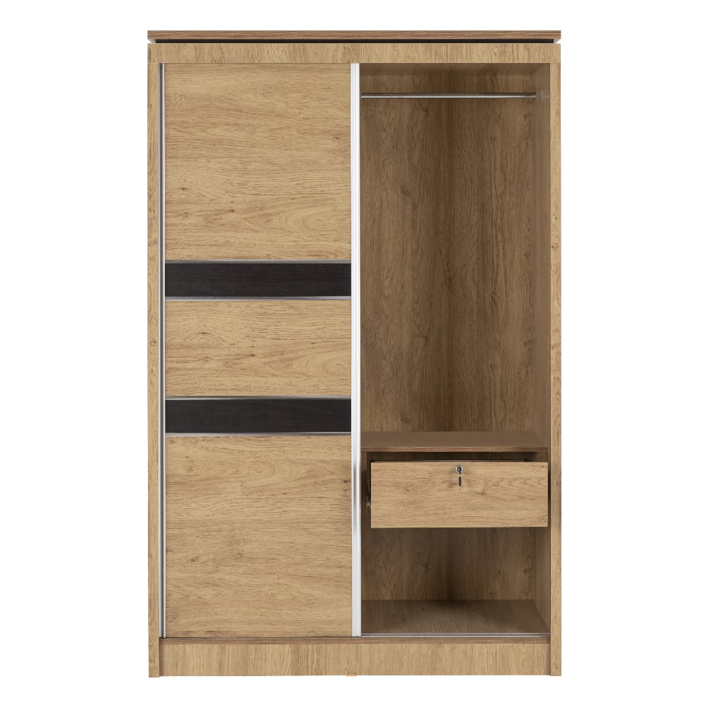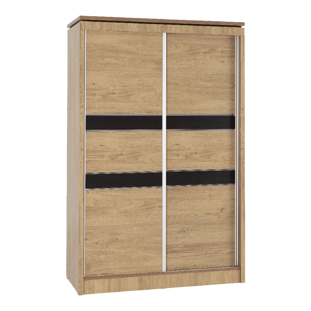 CHOICEWARDROBE Crieff 120cm Oak Effect Sliding Wardrobe – 2 Doors with Black Stripe Detail | Space-Saving Modern Design