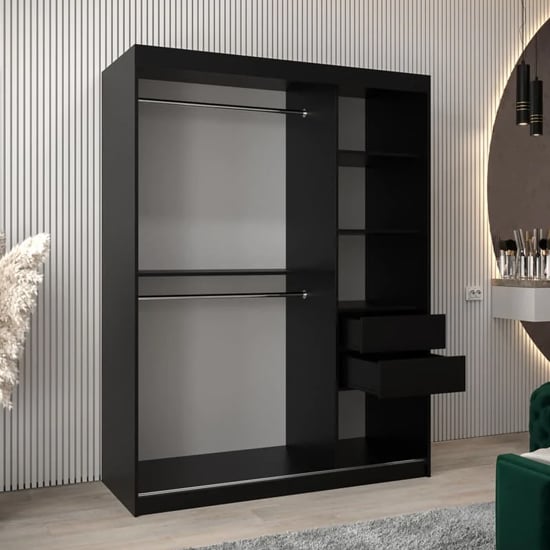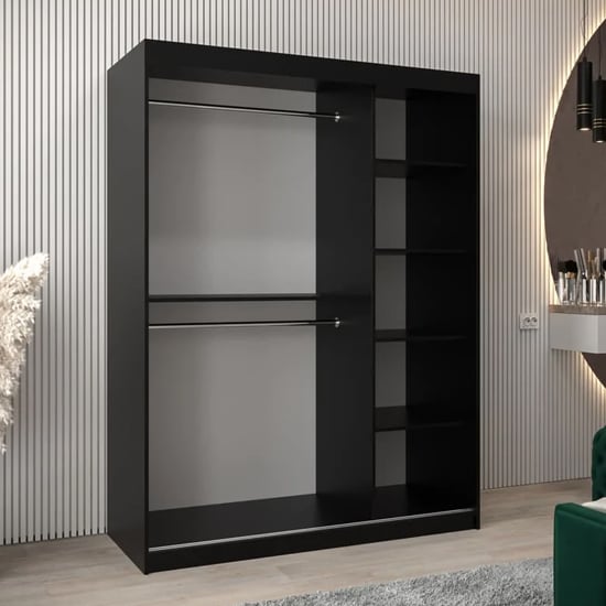 This mirrored sliding wardrobe is designed to maximise storage while maintaining a clean, modern bedroom aesthetic. Finished in deep black, it delivers strong visual contrast while remaining timeless and versatile.