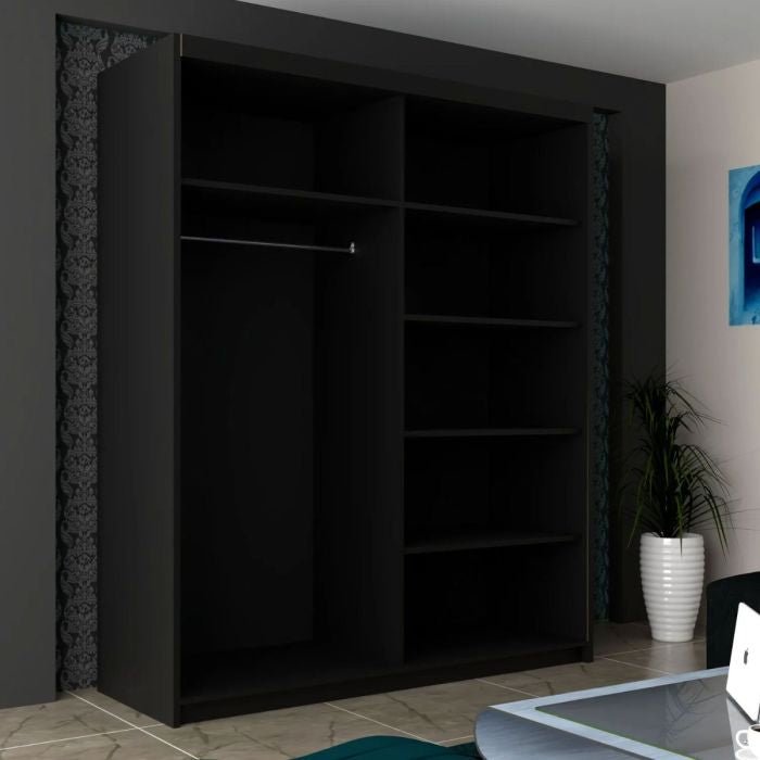CHOICEWARDROBE Infinite Sliding Door Wardrobe 2 Doors 150cm Black Mirrored Doors