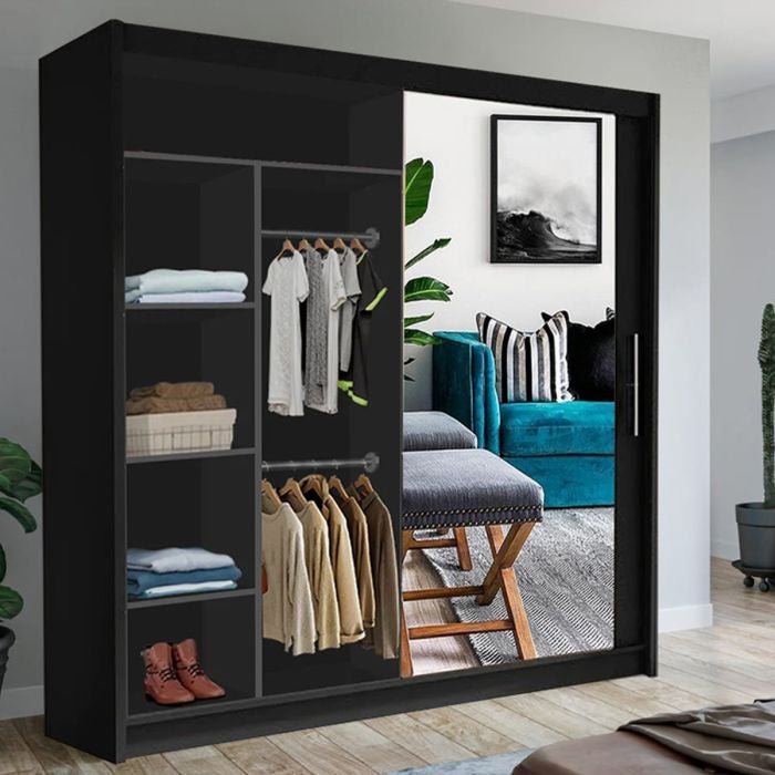 Sliding Wardrobe - KEYNES 2 Door Mirrored Wardrobe Black - 180cm