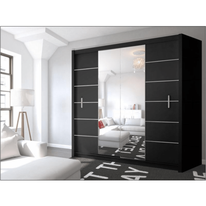 The CHOICEWARDROBE Lisbane 203cm Sliding Door Wardrobe delivers a refined, modern storage solution designed for bedrooms that require both width and visual balance. Finished in black with full-length mirrored sliding doors, this wardrobe enhances light, depth, and spatial flow while providing substantial internal organisation.