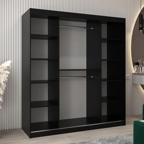 The CHOICEWARDROBE Vevey II Mirrored Sliding Wardrobe is a refined storage solution designed for modern UK bedrooms where space efficiency, visual clarity, and long-term practicality matter. Finished in a deep black tone with integrated mirrored panels, it delivers a confident, contemporary presence without overpowering the room.