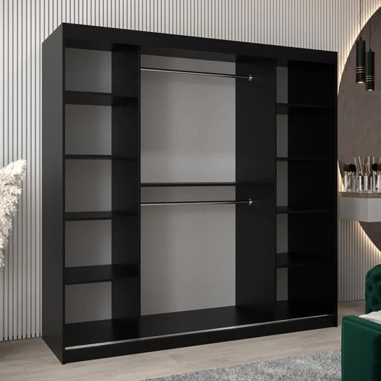 Vevey III Mirrored Wardrobe 2 Sliding Doors 200cm In Black