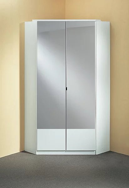 CHOICEWARDROBE Inagu Corner Wardrobe 95cm Sliding Door Wardrobe – White Finish, 2-Door, Mirrored Centre Doors