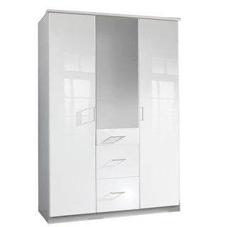CHOICEWARDROBE CALLISTO Hinged Wardrobe 3 Door Wardrobe 135 cm White High Gloss Mirrored Centre Door
