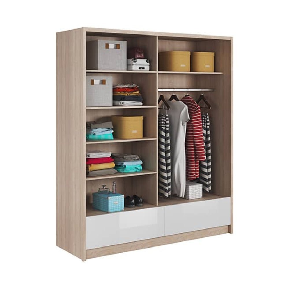 - Features: Two Sliding Doors, Two Drawers, Hanging Rail, Five Shelves