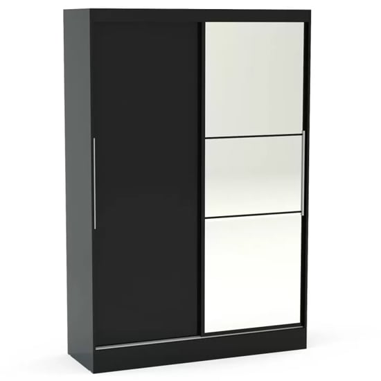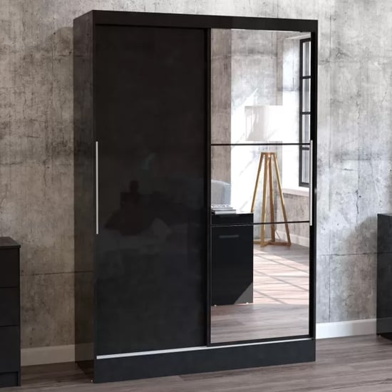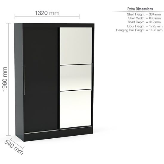 - Contemporary Design: Black high gloss exterior with mirrored sliding doors for a sleek, modern look.