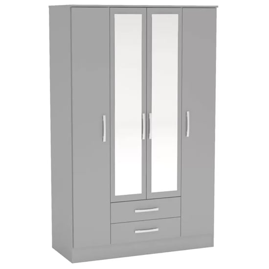 The CHOICEWARDROBE Lynn 4 Door Mirrored Wardrobe in Grey High Gloss delivers a bold, modern upgrade to any bedroom. Designed with dual full-length mirrors, sleek gloss fronts and a well-structured interior, this wardrobe offers both refined styling and highly practical storage—perfect for contemporary UK homes.