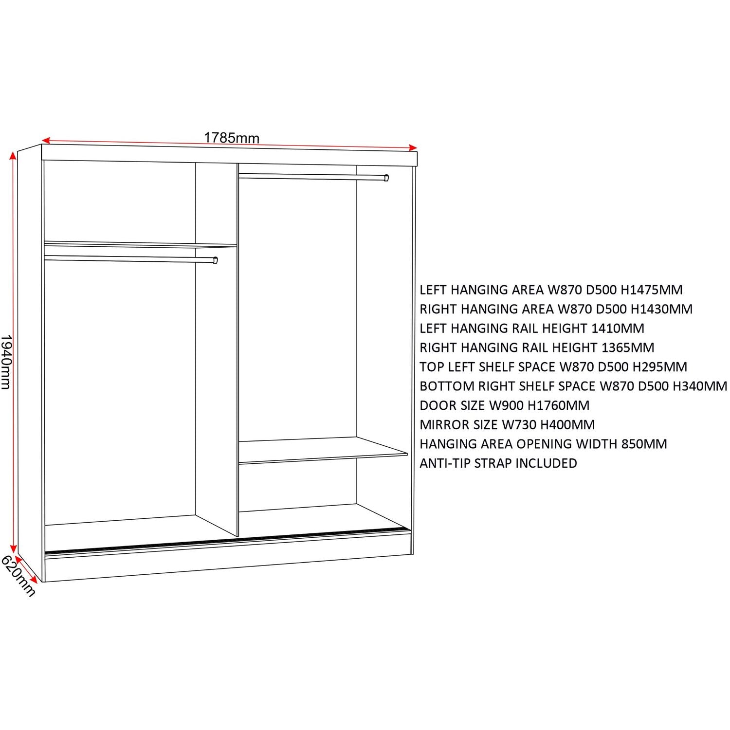- Right Hanging Area: W 87 × D 50 × H 143cm