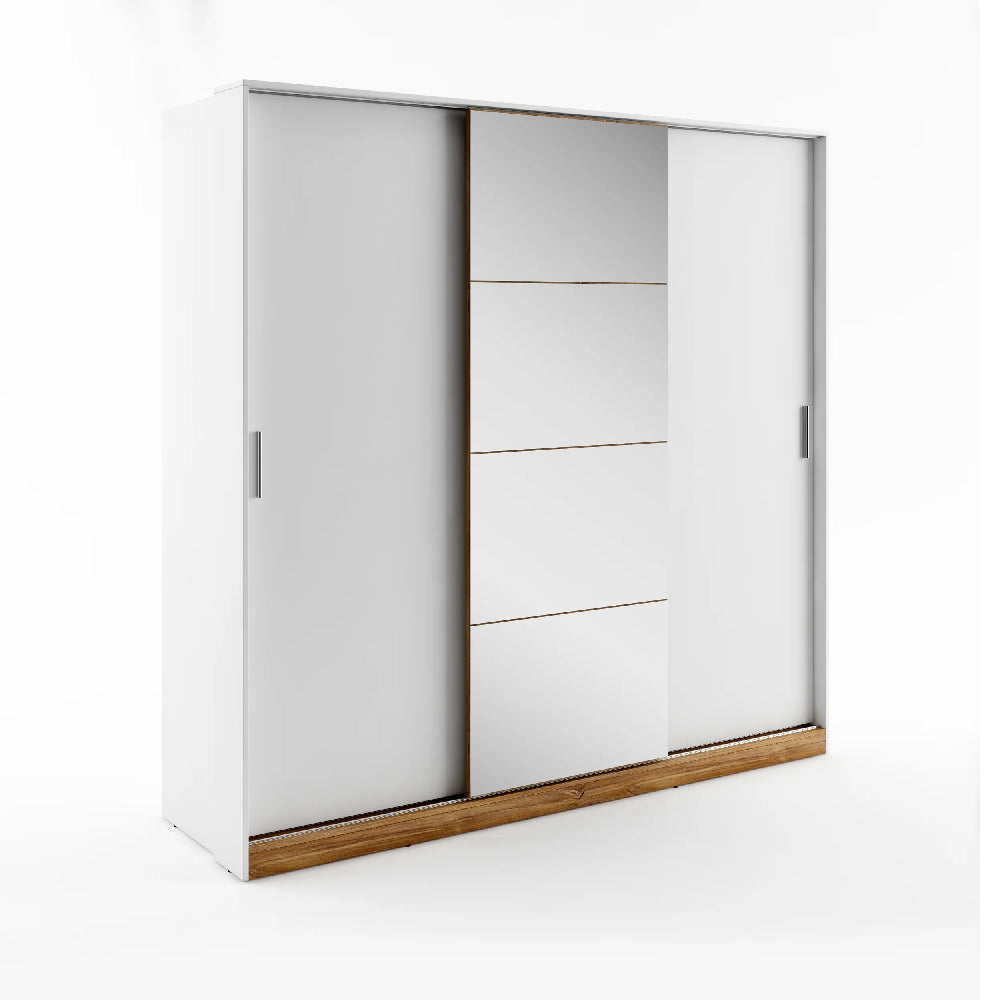 CHOICEWARDROBE Deptford 220cm White Matt Sliding Wardrobe – 3 Doors with Central Mirror & Oak Base Accent | Premium Modern Storage Solution