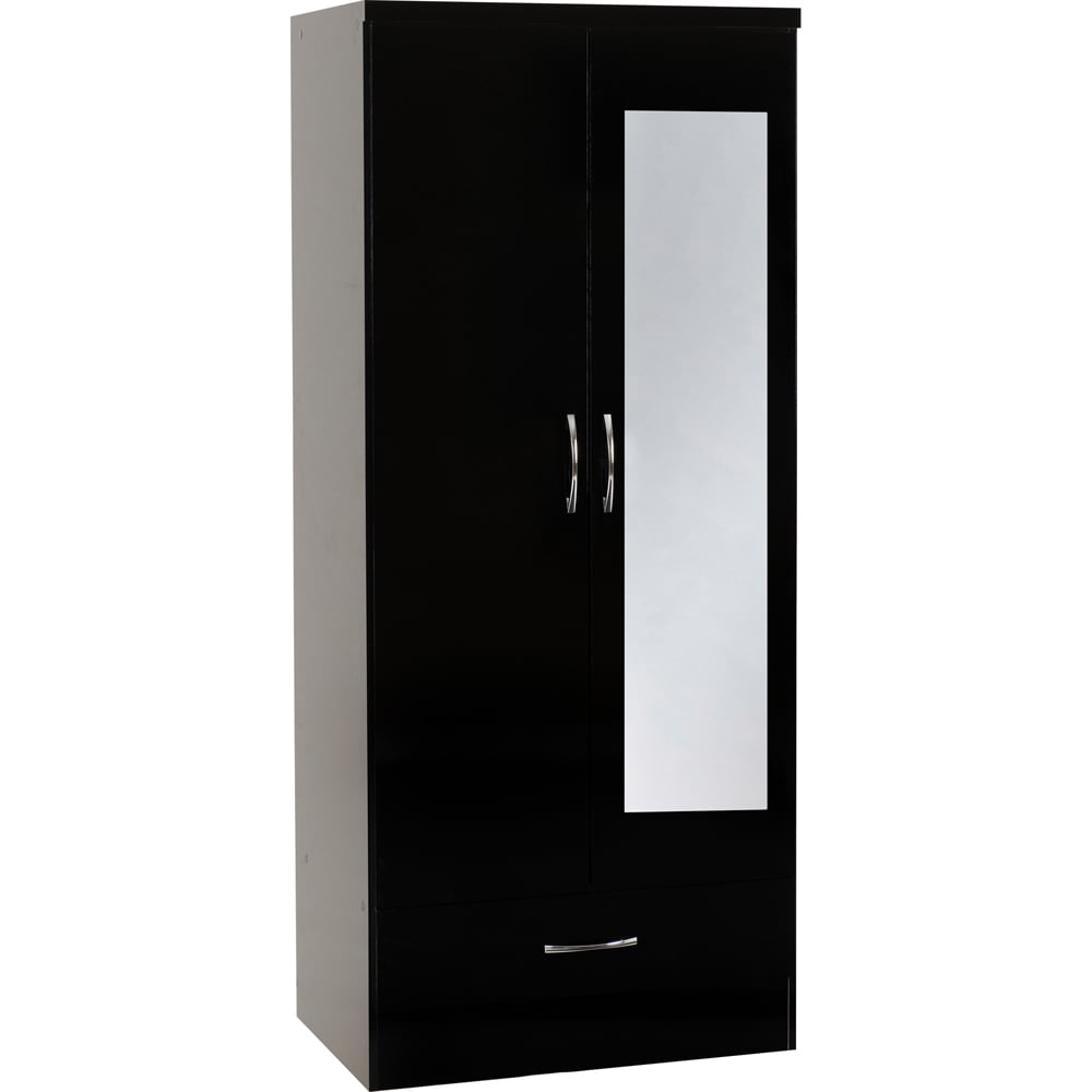 CHOICEWARDROBE Mack 2 Door Wardrobe with Mirror & 1 Drawer – Black Finish, 74.5cm Wide
