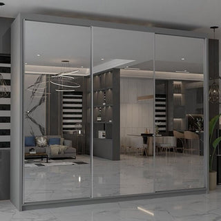 Sliding Wardrobe - KEYNES 3 Door Mirrored Wardrobe Grey 250cm