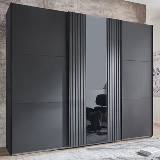 Choice Wardrobe Atlantic 300cm Sliding Door Wardrobe – Grey Finish, 3-Door, Mirror Center Panel