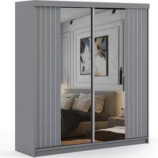 CHOICEWARDROBE Molli Sliding Door Wardrobe – Grey Finish, 2-Door, Mirrored Doors