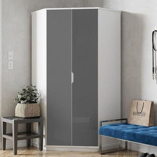 Corner Wardrobe - SARNIA 2 Door Wardrobe White with Grey Front 93cm
