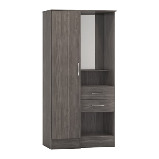 CHOICEWARDROBE Modara Grey Wood Grain Vanity Wardrobe – 1 Door, Mirror, 2 Drawers & Open Storage
